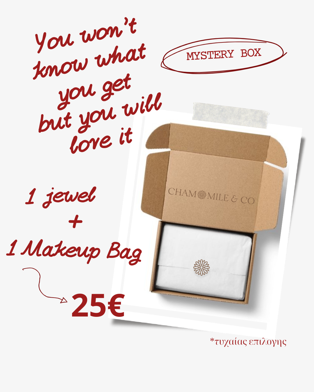 To Jewel & Makeup Bag Mystery Box περιλαμβάνει 1 κόσμημα και 1 Makeup Bag τυχαίας επιλογής.